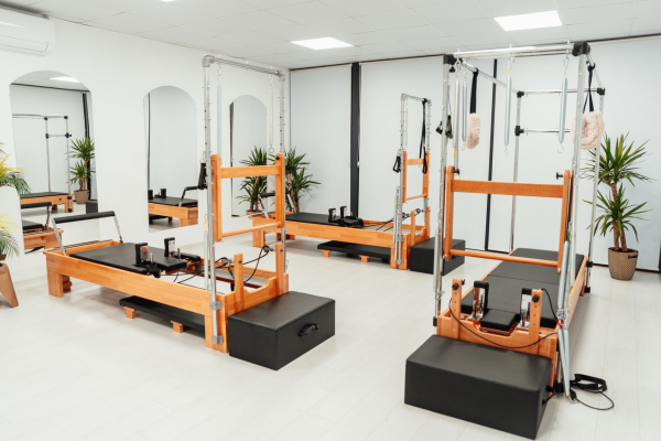 Os aparelhos de pilates, como Reformer, Cadillac e Chair, proporcionam resistência controlada com molas, permitindo movimentos avançados e personalizados.